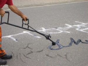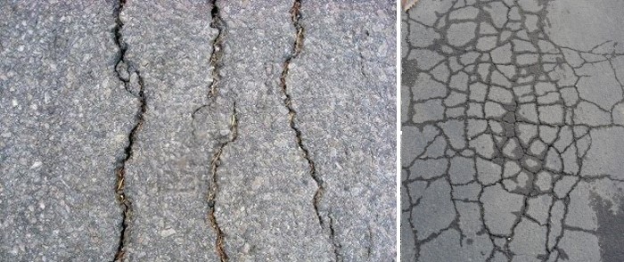 Risse ausblasen und mit Vergussmasse vergiessen. Risse auffräsen und